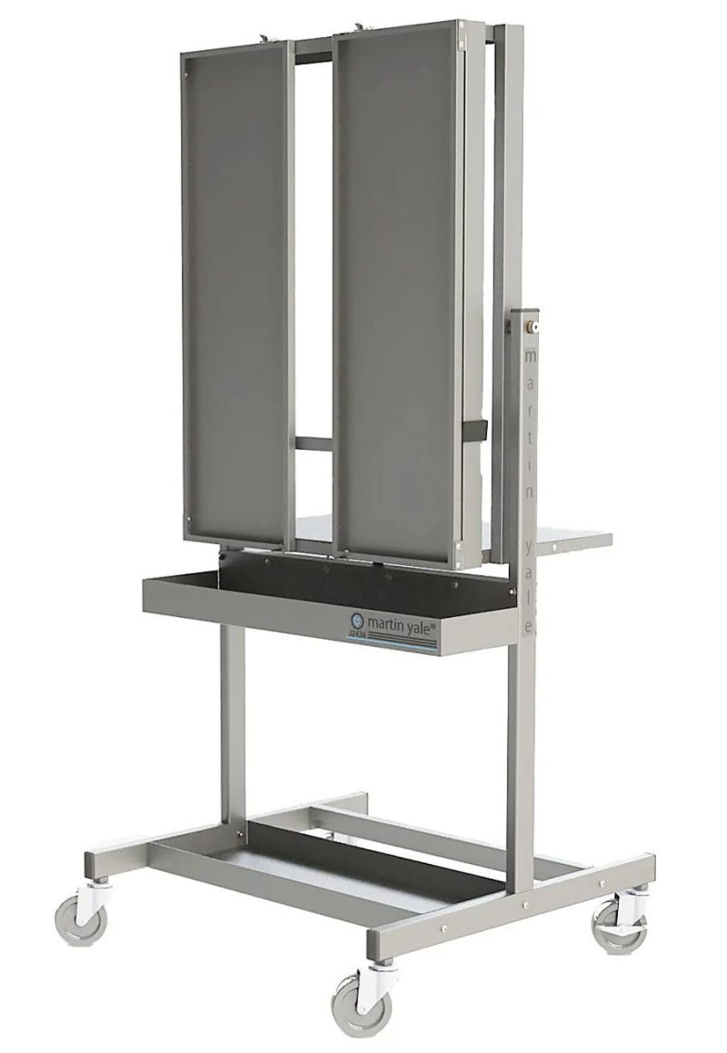 Martin Yale J2436 Titan Padding Press features durable construction and various safety features for reliable and safe operations. It has steel twin doors that provide a level surface to straighten reams. Safety features include no pinch or crush points, locking casters, spring-loaded tilt latch, and shallow tilt angle, which allows for safer tilting and easier positioning for durability and functionality.