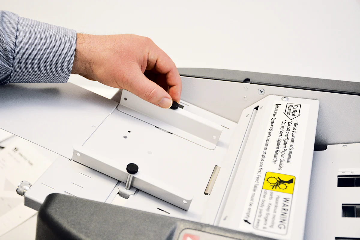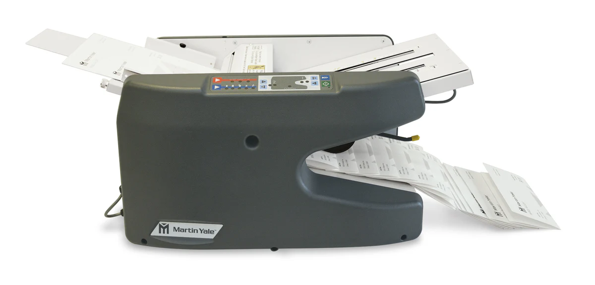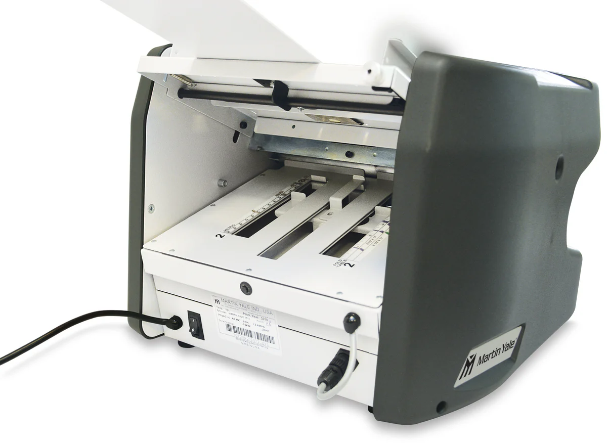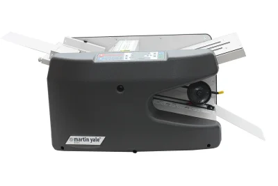 The Martin Yale 1611 makes paper folding extremely easy and efficient through the automatic feeding, folding, and stacking process, without the need for fanning. Enhanced precision paper screw adjustment keeps the folds crisp and accurate for professionally looking folded documents. Improved feed system, removable fold tables, easy access to rollers, stacking wheels, and self-centering paper guides make the Martin Yale 1711 one of the most efficient folding machines for letters and documents.