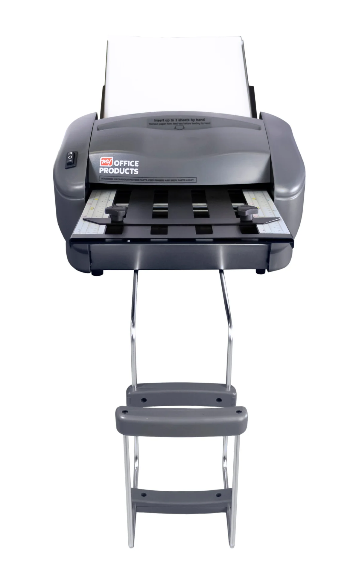 The Martin Yale P7500 is capable of folding 8.5” x 11” letter-size and 8.5” x 14” legal-size documents and accommodates a range of paperweights. The paper folder offers 4 fold presets, including Half Fold, Letter Fold, Z-Fold, and Double Parallel, as well as custom fold capabilities. Up to 50 sheets can be stacked in the feed tray, which are collected in the stacking tray after automatic folding is complete. This ensures convenient collection and easy handling of folded documents.