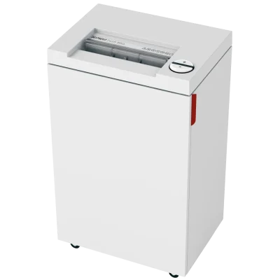 The Destroyit 2465 Paper Shredder offers versatile, high-performance shredding with Smart Shred Control (SSC) to prevent paper jams. It features a comprehensive SPS safety package, including a transparent safety shield, automatic power cut-off when the cabinet is opened or the shred bin is full, and double overheating protection. The illuminated Easy Switch control provides clear operational status indicators, while the shredder automatically starts and stops via a photocell. The high-quality hardened steel cutting shafts can shred staples, paper clips, and credit cards. Its eco-friendly, bag-free shred bin and quiet motor ensure efficient, safe, and environmentally conscious operation.